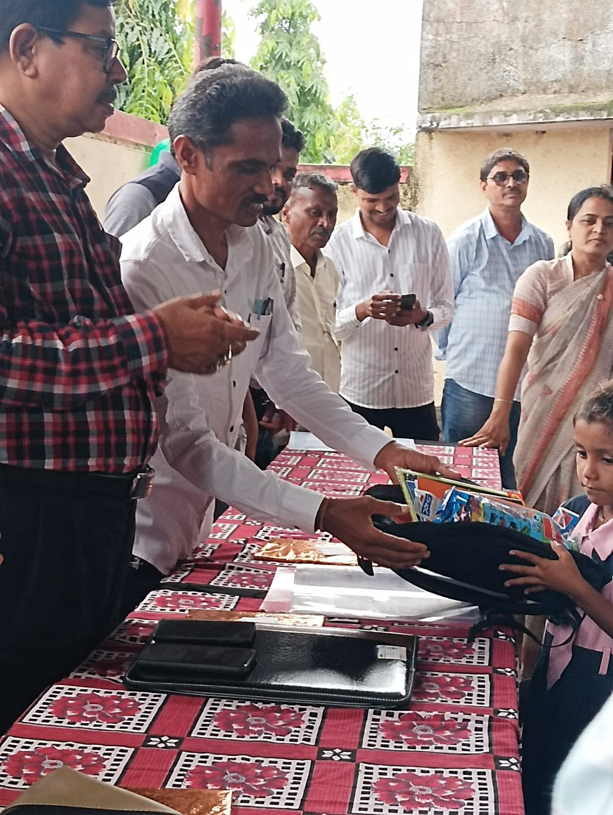 ધોરણ.૧.મા નવા દાખલ થયેલ બાળકો. આંગણવાડી ના બાળકોને. દફતર. દેશી હિસાબ. વોટર બેગ. પેન. પેન્સિલ. રબર. આપવામાં આવ્યા હતા. દાતા શ્રી. દોલત ભાઈ. કે. પરમાર. તરફ થી સને.૨૦૧૬થી શાળા મા અભ્યાસ કરતા બાળકોને ડાયરા અને નોટબુક નું. વિનામૂલ્યે. મફત. વિતરણ કરવામાં આવેછે. પ્રાસંગિક પ્રવચન. સી આ. સી. શ્રી. જતીનભાઈ પટેલ. નિવૃત્ત પ્રિન્સિપાલ શ્રી નટવર ભાઈ પરમારેકર્યું હતું.