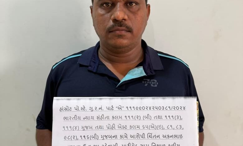 આ દરમિયાન, તા.૨૫/૧૧/૨૦૨૫ ના રોજ પો.સ.ઇ. ડી.એ. તુવરની ટીમને અત્યંત ગુપ્ત અને સચોટ માહિતી મળી કે પ્રોહીબીશન ગુનાઓનો લિસ્ટેડ આરોપી ચિંતન અકનભાઇ વસાવા (ઉ.વ. ૩૫, રહે. માટીયેડ ગામ, તા. અંક્લેશ્વર), હાલમાં તેના વતનમાં આવેલો છે.